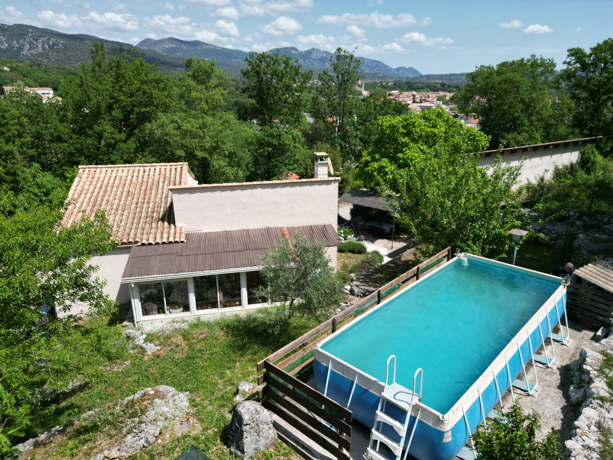 Cazilhac, cadre exceptionnel, cette maison se compose d'un salon avec hauteur sous plafond apportant luminosité et caractère, une cuisine équipée indépendante, 3 chambres dont 1 suite parentale, une salle de douche indépendante, un WC indépendant et une véranda. Le bien dispose également de 2 garages dont un exceptionnel de 74m² avec étage, idéal pour artisan, du stockage ou un projet d'aménagement supplémentaire. Piscine et barbecue complètent cette maison pleine de potentiel, parfaite pour une famille et un projet de vie au calme. Située dans un environnement privilégié, cette belle maison vous séduira par son cadre naturel unique. Edifiée sur un vaste terrain arboré, la propriété offre un cadre de vie idéal.