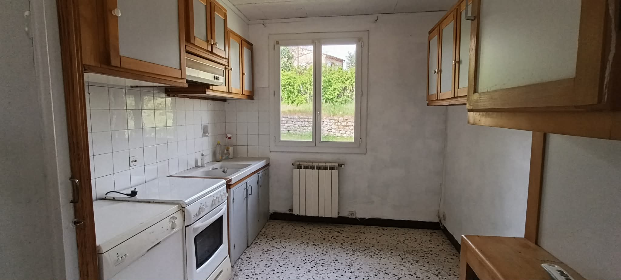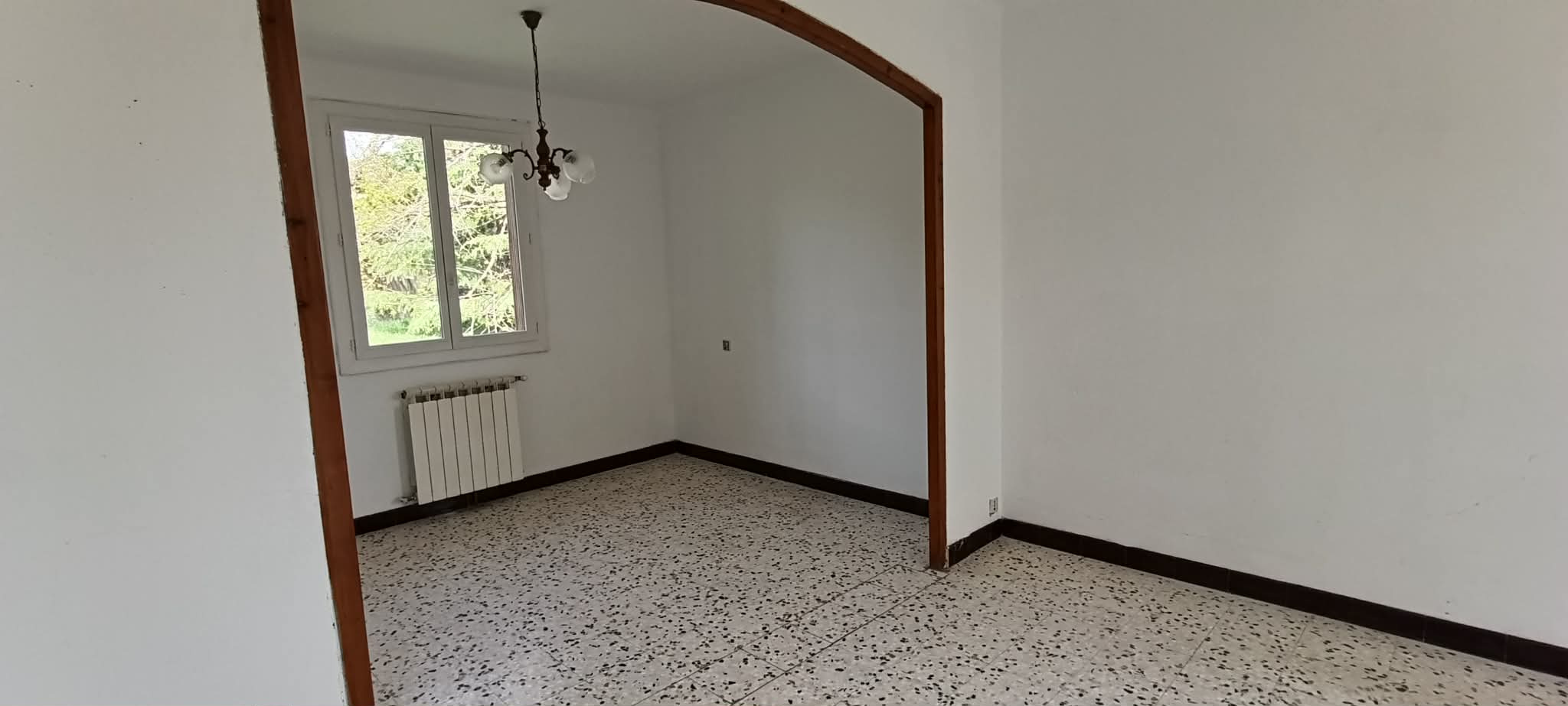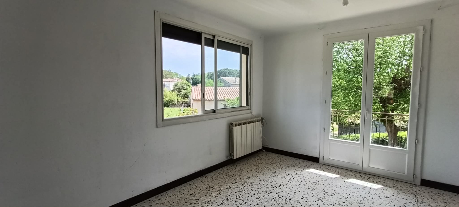 Cazilhac, villa dans quartier calme et paisible: au RDC: grand garage avec atelier. La vie à l'étage avec 3 chambres, séjour, cuisine indépendante, balcon. 875 m² de terrain paysagé avec cabanon de 19 m². Poulailler.