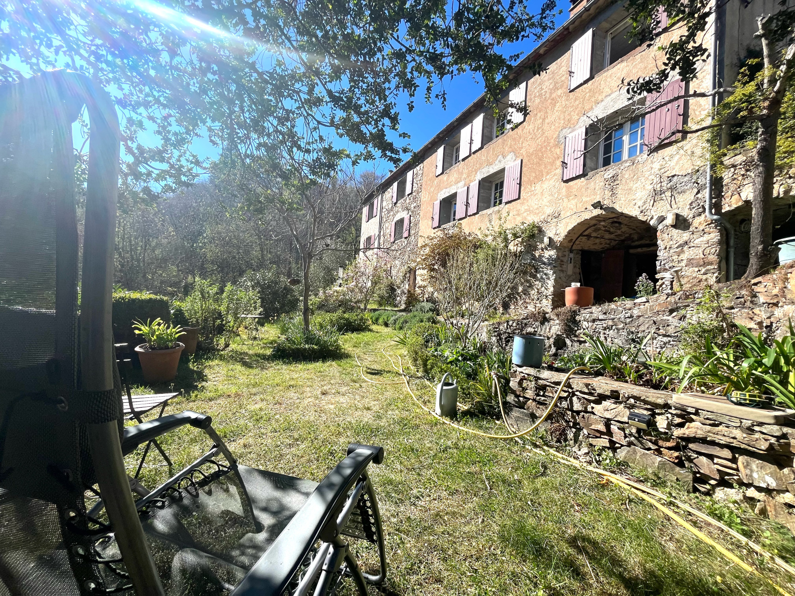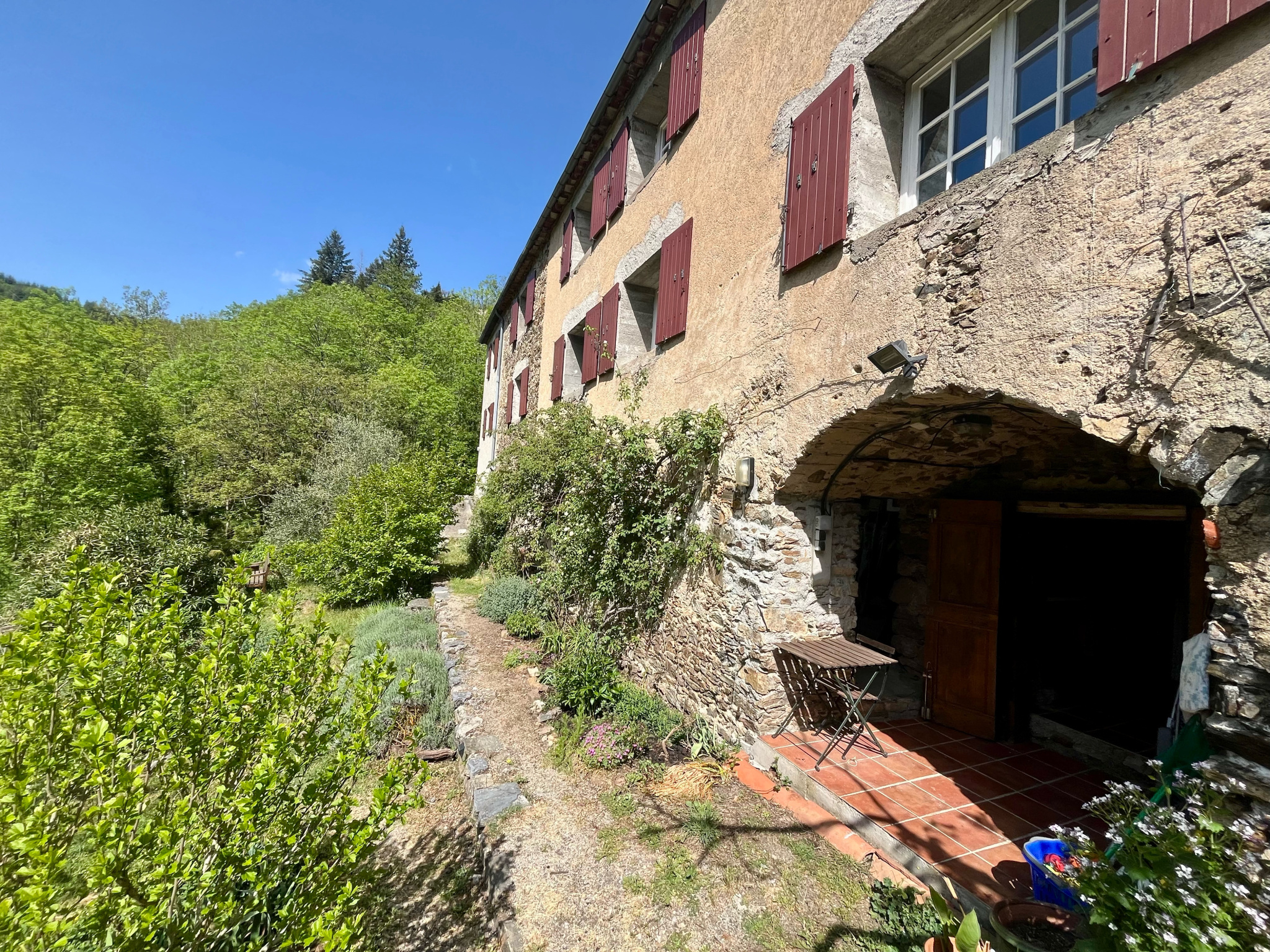 Mandagout - Magnifique demeure sur presque 1 hectare de terrain avec ruisseau et belle vue sur les montagnes La maison se compose de deux plateaux distincts, offrant de nombreuses possibilités Au rdc un spacieux séjour, un bureau, wc, salle d'eau, une cuisine salle à manger lumineuse ainsi qu'une chambre avec vue sur les montagnes. A l'étage une entrée indépendante, un bureau, quatre chambres, deux salles de bains et wc. Cuisine d'été, nombreuses caves et jolie terrasse complètent ce bien Le plus : Exposition sud et un jardin luxuriant très bien entretenu et irrigué par l'eau d'une source